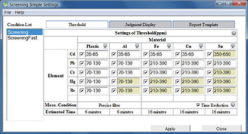 A threshold value can be set for each material and element. The screening evaluation method changes according to how the threshold values are set.