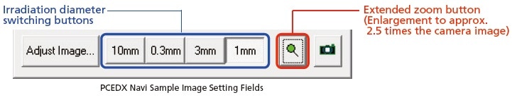 This system supports smaller samples, which heightens the visibility of sample observation images. Users can switch to an enlarged image approximately 2.5 times larger than a previous image, without image quality degradation. - Automatic Four-Stage Switching Between 0.3, 1, 3, and 10 mm in Diameter